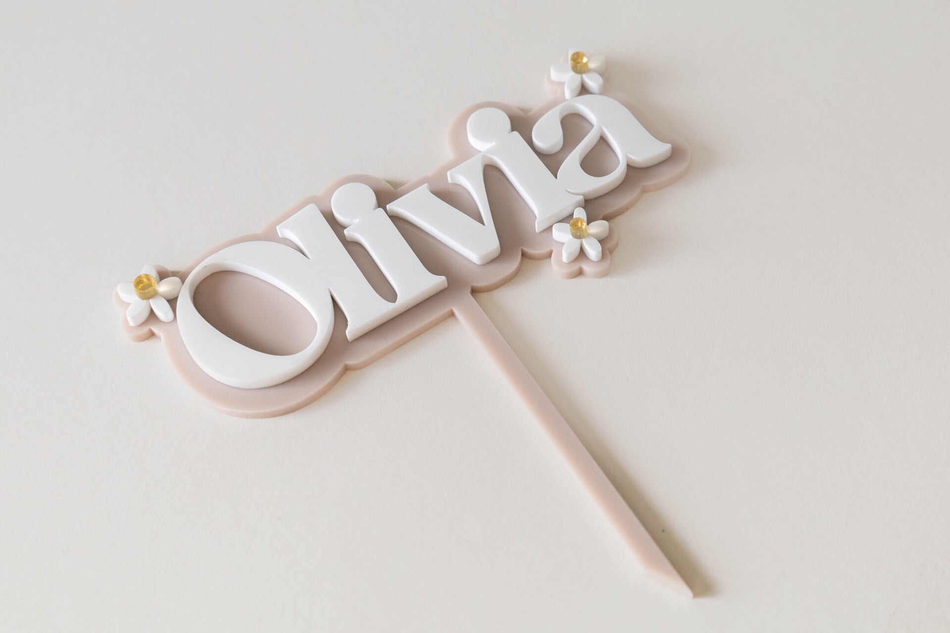Mooie, herbruikbare acrylaat taartopper met naam.